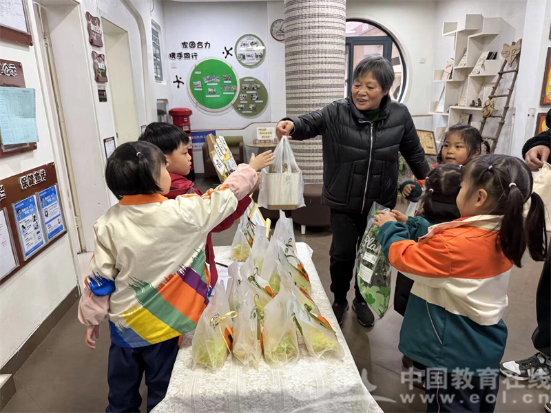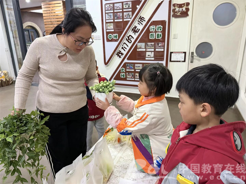 每月固定兑换日,幼儿园大厅的 “鸡蛋兑换处” 热闹非凡 。“主理人” 皆为自愿报名的大班孩子。他们分工井然有序:仔细核对名单、轻轻递上鸡蛋、耐心介绍兑换物品,稚嫩的声音里满是专注与认真。“请把常春藤给我,这是你的鸡蛋!”小主理人有条不紊的模样,成了现场最动人的风景。