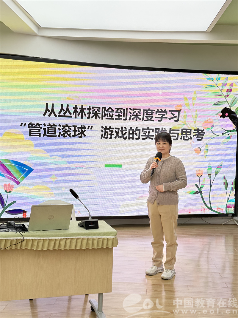 张伟君老师的《丛林寻趣・滚球启智——文晖中一班“管道滚球”游戏的实践与思考》则植根于中班幼儿对丛林区皮球滚动现象的好奇。孩子们自主讨论确定游戏材料,在搭管道、试滚球、辨球性、定规则的过程中,探索物体滚动的科学原理,既锻炼了身体动作协调性、语言表达能力与社会交往能力,也让科学探究在游戏中自然发生。