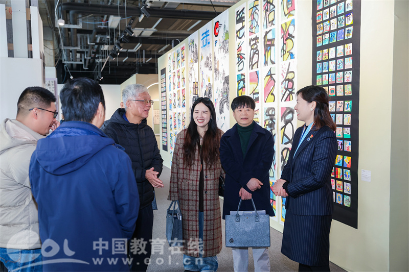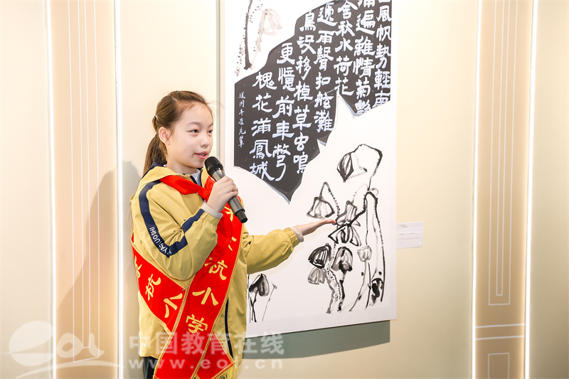 “最让我过目不忘的是那组黑底白字的书法绘画结合作品,四整张拼接,气势恢宏。”在高甬春看来,美育的核心是滋养人格,而育才京杭小学做到了。“从书法到剪纸再到篆刻,根植传统文化的底色,让美育真正落地生根。”