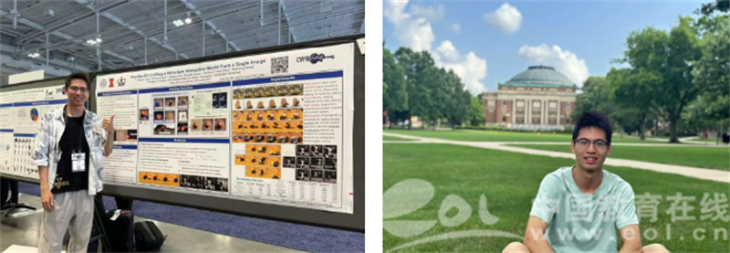 为了使具身仿真更贴近真实物理世界,陈博远在2025年暑假前往斯坦福大学研修,尝试从视频中重建可变形物体的动力学,相关论文正在撰写中。多次的跨国科研让他意识到,学科交叉不仅是知识的叠加,更是一种思维方式的重塑。