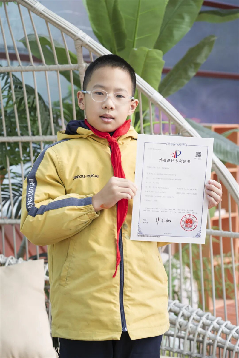 近日,育才小学收到好消息,五年级邓肯同学将看似天真的想法,通过学校的3D智造课程,变成了一款栩栩如生的手办模型,并成功获得了国家外观设计专利。
