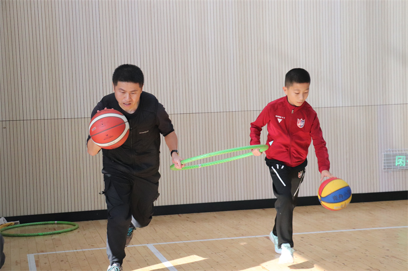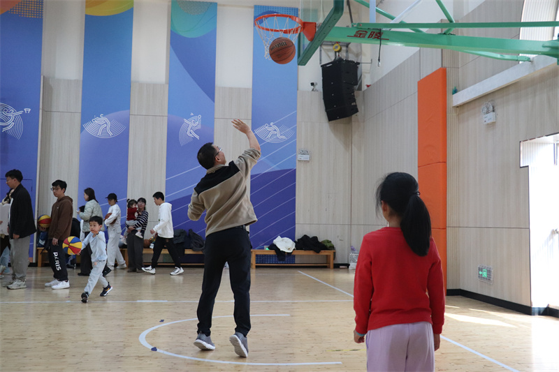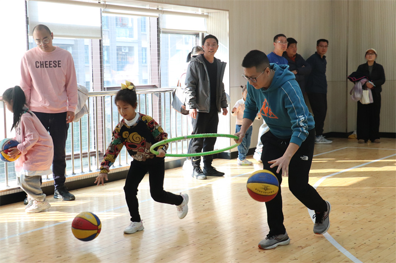 “大手拉小手运球”项目中,家长与孩子共握圈环,左右手交替拍球往返,默契配合间流转着亲情;“亲子接力投球”限时30秒,绕杆运球、默契传球、精准投篮一气呵成,3分球命中更可斩获额外积分。两项赛事总分决出“竞舟灌篮高手家庭”“竞舟阳光活力家庭”,亲子装上阵的温馨场景,成为赛场最动人的风景。