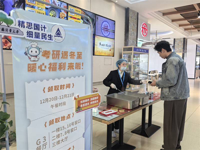 考试期间恰逢冬至,为了让考生感受到“家”一般的温暖,学校特意准备了一份小惊喜:后勤服务中心在餐厅开设助考专窗,考生凭准考证即可免费领取一份汤圆或水饺。这让浙江财经大学张同学倍感暖心:“味道很好,六颗汤圆还寓意着‘六六大顺’,学校的这份用心我收到了。”