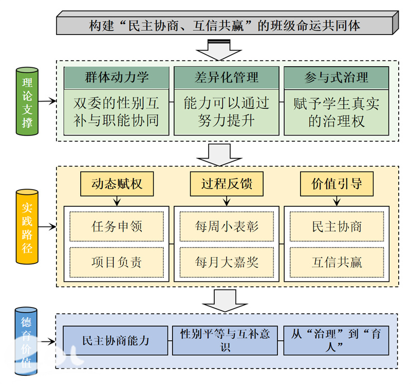 从理论层面看,“一班双委生态仓”实践融合了群体动力学、差异化管理等教育理念,在德育方面实现了多重价值突破:一是培养了学生的民主协商能力,使其在团队议事、冲突解决中学会倾听与表达;二是打破了性别刻板印象,促进男女生优势互补;三是将班级从单纯的管理单元转变为学生社会性成长的重要场域。