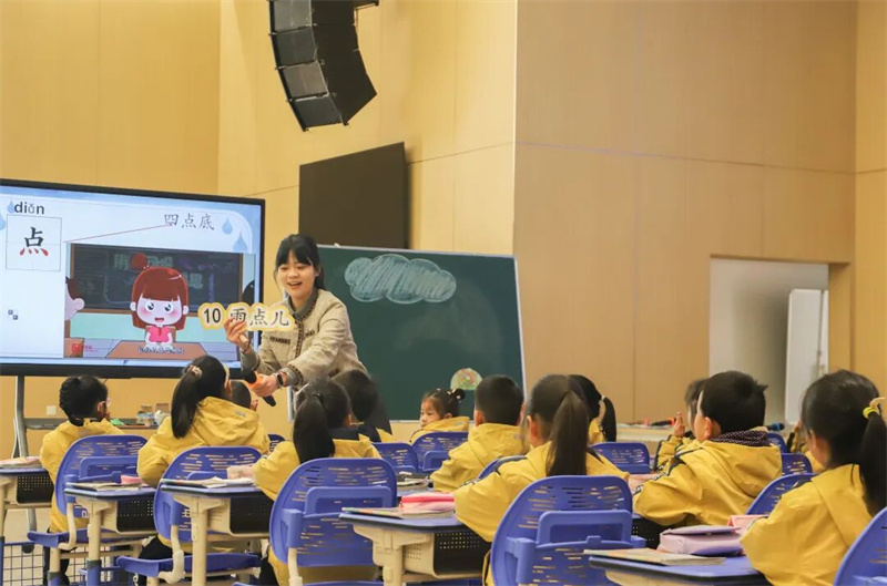 余杭锦绣小学梁乐乐老师执教的《雨点儿》一课,遵循“趣味启蒙”原则,打造了生动活泼的低年级课堂。从儿歌谜语导入,巧妙讲解汉字偏旁;通过分角色朗读,引导学生掌握问句特点;穿插多种互动环节,兼顾知识性与趣味性,充分契合低年级学生的认知特点。