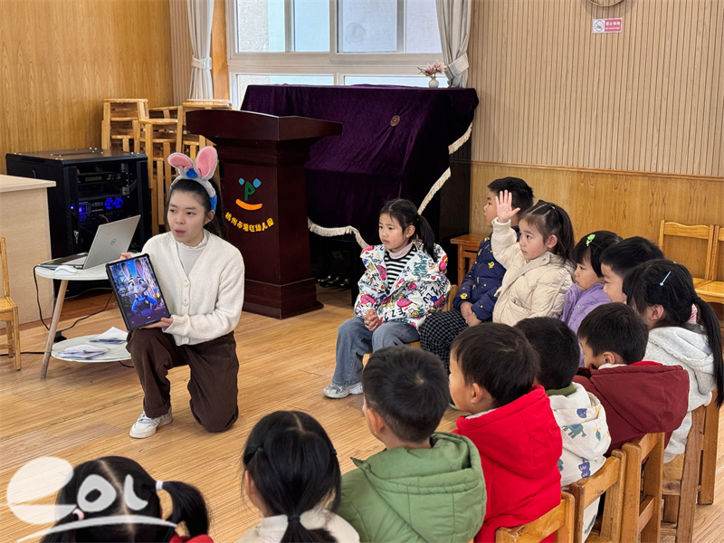 如何让怕冷的孩子爱上户外运动?郑佳老师通过《怕冷的大恐龙》这一故事,引导幼儿理解运动抵御寒冷的重要性。活动中,AI技术让恐龙与孩子们实时互动,激发参与兴趣;再借助AR技术,将大恐龙“请”到孩子身边,一起运动游戏。在虚拟与现实交织的情景中,孩子们直观体验到了运动的乐趣。