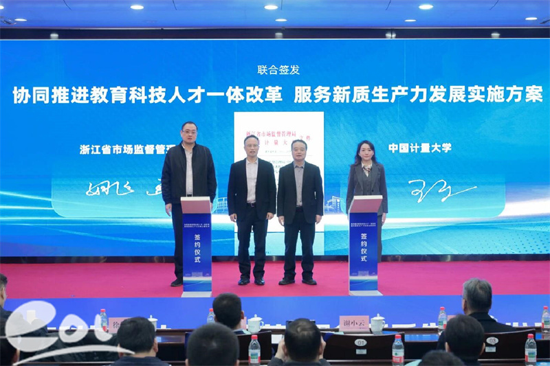 活动现场,中国计量大学与省市场监管局正式签署并发布《协同推进教育科技人才一体改革 服务新质生产力发展实施方案》。双方将通过夯实教育基础支撑、强化科技创新引领、优化人才供给体系、建强“两新”融合载体、实施重点领域攻关项目、贯通科技创新产业创新链条、健全协同工作机制及完善配套激励政策等八大方面系统性举措,全面推进教育、科技、人才深度协同,服务浙江特色现代化产业体系建设与新质生产力发展。