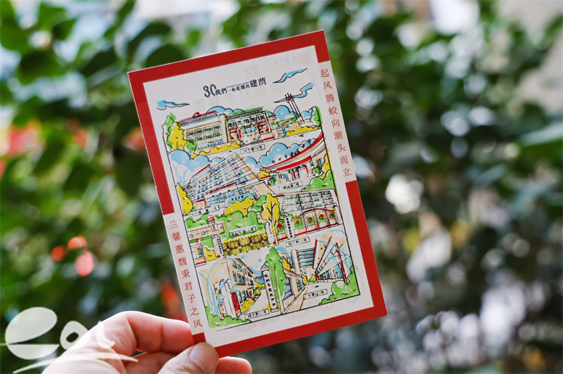 八年级同学发挥化学特长,用草木提炼的芬芳墨水绘制建兰风光明信片。这些作品运用化学变色原理,画面会随着呵气或沾水产生灵动变幻,将理性智慧与感性祝愿完美融合。九年级毕业生则以精工匠心制作金属镂空书签和校园IP形象钥匙扣,作品承载着对母校的感恩与祝福,展现出历经三年淬炼后的真挚情感。