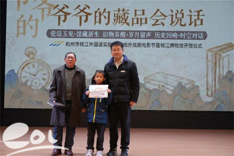 冬韵氤氲文脉长,旧物低语传薪火。12月26日,杭州市钱江外国语实验学校迎来“爷爷的旧物会说话”——钱外地球新年主题活动之钱外戏剧电影节暨钱江宋韵馆开馆仪式。这场集文化展示、德育渗透、美育熏陶与科技实践于一体的校园盛典,以“藏品”为媒、以“旧物”为桥,串联起“过去-现在-未来”的时空对话,让千年宋韵与时代记忆在校园里焕发新生。