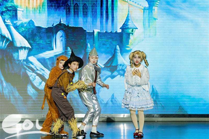 舞台之上,崇文世纪城的“小戏骨”们皆全身心投入表演,尽是全力以赴的少年。六(1)班《查理和巧克力工厂》传递诚实与善良,六(2)班《爱丽丝梦游仙境》演绎勇气与正义,六(3)班《狮子王》诠释责任担当,六(5)班《阿凡提的民间故事》传承中华美德,六(6)班《哪吒之魔童降世》以“我命由我不由天”引发全场共鸣,而六(4)班的《绿野仙踪》则通过与伙伴同行的故事,诉说着成长路上的温暖与力量。台上“小戏骨”们眼神灵动、台词真挚,将角色喜怒哀乐演绎得淋漓尽致,让“中国心・世界眼・国际范”的精神风采熠熠生辉。