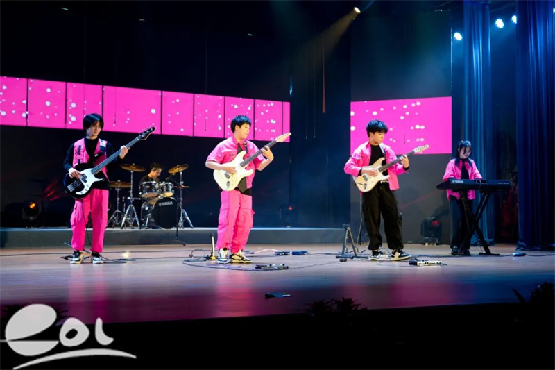 18时30分,演出在杭州市景芳中学带来的电声乐《我的未来式》中拉开帷幕,激昂的鼓点与绚丽的灯光交相辉映,青春宣言瞬间点燃全场热情。