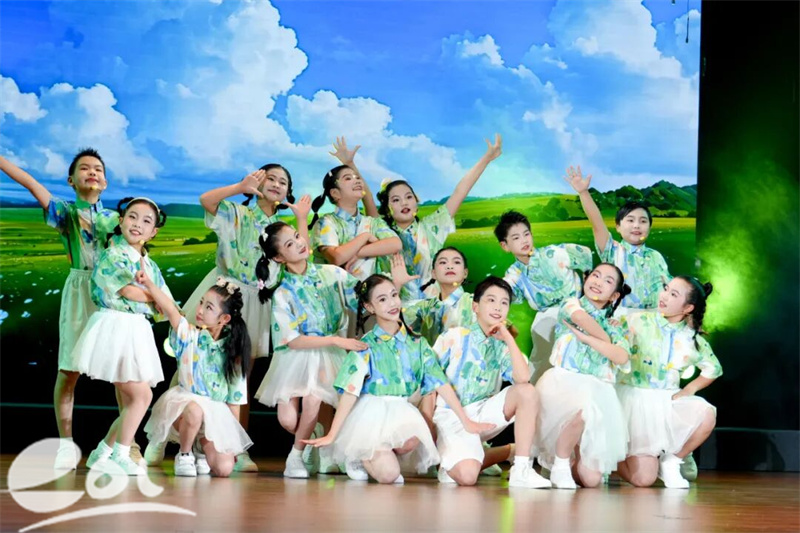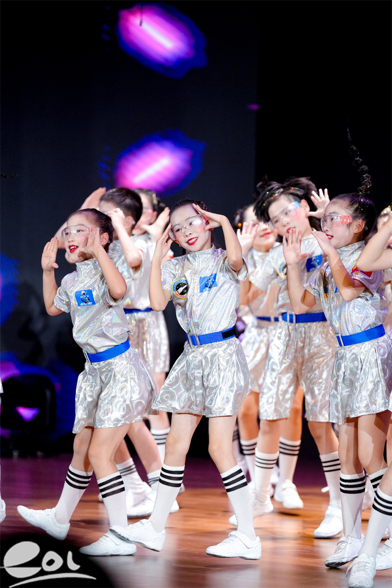 第三篇章:舞动青春。本篇章以舞蹈艺术为主体,通过多样化的舞蹈形式展现当代青少年的精神风貌。由饮马井巷小学、采荷实验学校带来的集体舞《一起跳舞吧》率先登场。