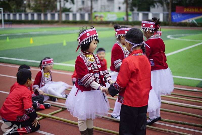 竹竿的清脆碰撞声、同学们的畅快欢呼声、观众的热烈喝彩声交织回荡,奏响了民族文化传承的动人乐章,让传统体育项目在校园中焕发新生。