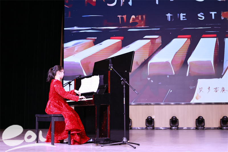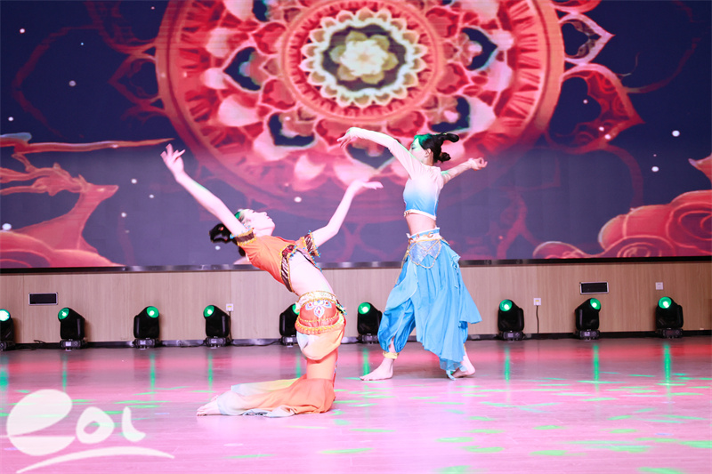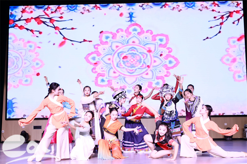 演出分两大篇章,舞蹈串烧《百舞惊鸿》《小城瑶》、歌曲《一路生花》、钢琴独奏等节目兼具古典韵味与青春活力;古琴合奏+朗诵《阳关三叠》彰显传统文化底蕴,相声《卖鱼蛋》带来阵阵欢笑,教师合唱《此生不换》《中国人》更是点燃全场氛围。抽奖环节为师生送上新年惊喜,现场氛围热烈。