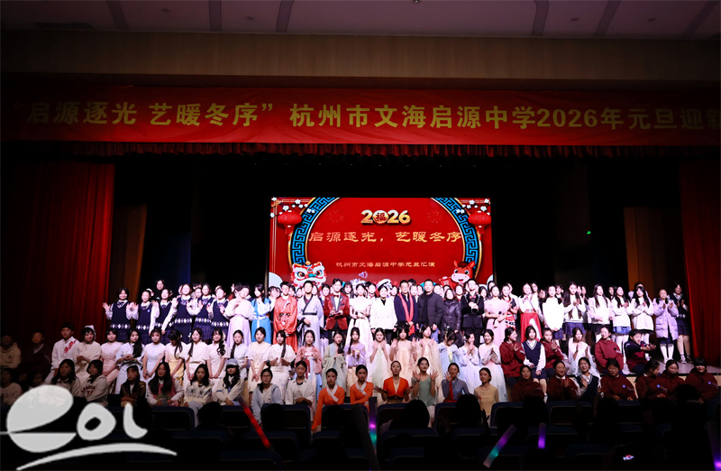 12月31日,杭州市文海启源中学“启源逐光,艺暖冬序”元旦迎新汇演在一楼报告厅举行,全校师生共庆佳节。汇演在《摇滚卡农》的激昂旋律中拉开帷幕,师生奏唱国歌后,2025学年大事记视频回顾唤起集体共鸣。