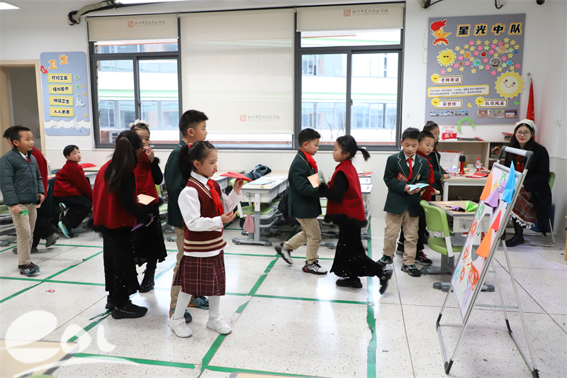 当天下午,趣味游园会同步热闹开场,各教室变身游戏乐园,每班设计一项趣味活动,同学们手持游园卡,穿梭于各个楼层,集章兑奖,笑声不断。同学们每参与一个项目,即可获得一枚印章,集满一定数量后可前往指定兑换处领取精美奖品。各个楼层均有老师负责引导与秩序维护,确保活动安全有序。