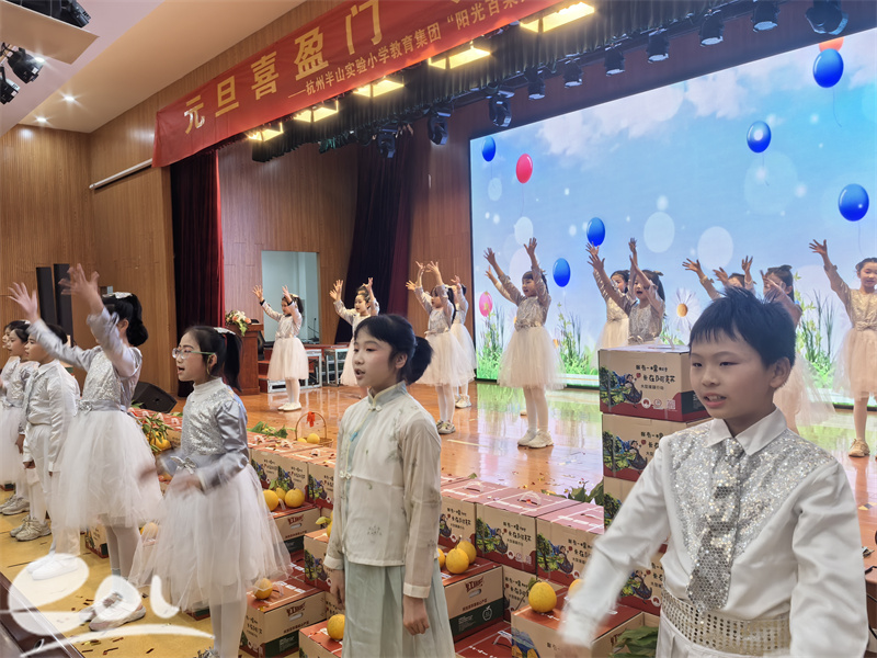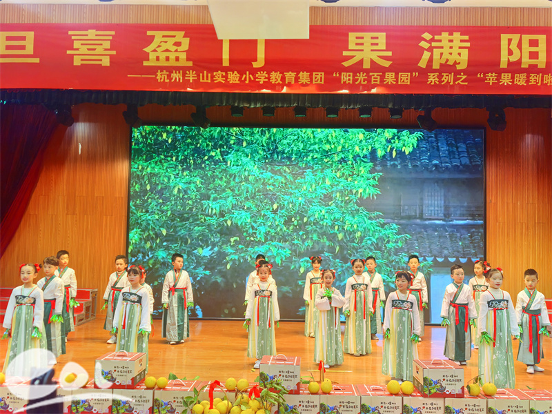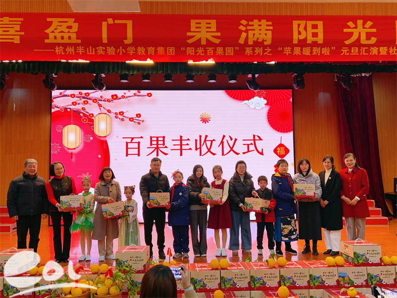 冬日暖阳洒满校园,果香清甜萦绕心间。12月31日,杭州半山实验小学教育集团明德校区报告厅内掌声雷动、欢歌笑语,“元旦喜盈门 果满阳光园”——“阳光百果园”系列之“苹果暖到啦”元旦汇演暨社团展演活动圆满举行。五年级师生现场观演,其余年级在教室同步收看直播,全校师生以歌舞传情、以果实表意,在感恩与分享中迎接新年的到来。