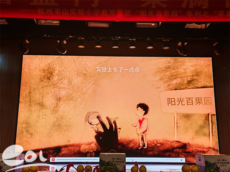 在全场期待中,“阳光百果园”丰收仪式温馨启幕。此前,六年级学生已在校园柚子林完成丰收仪式,亲手摘下成熟的果实,感受劳动的喜悦。当天,各年级教师代表与学生代表依次走上舞台,接过红彤彤的阿克苏苹果,将这份温暖与甜蜜传递到每个班级。