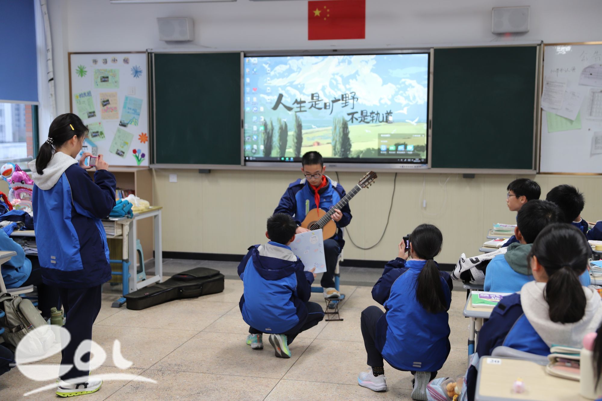 大市场活动之后,同学们回到班级,各班有序开展元旦迎新活动。同学们在教室里展示才艺,有的带来一曲曲动听的歌曲,引得座位上的同学们一起合唱;有的两三人一起跳舞,有没得舞姿让人心生敬佩。同学们沉醉在新年的喜悦氛围中,心里满是对来年的期盼。