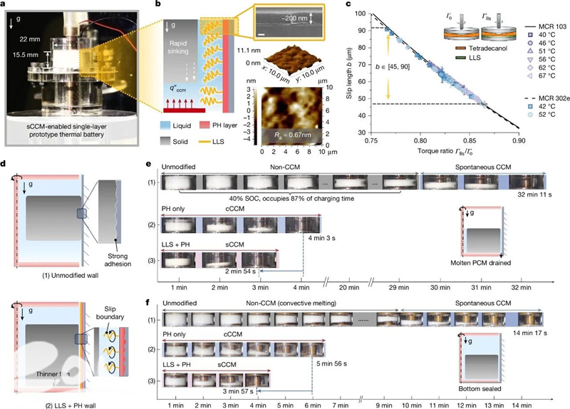 研究团队突破常规思维,创新性地从“接触式传热”入手,通过设计“全固态复合表面”实现热池内壁的超滑处理,使固态相变材料在重力作用下持续紧贴热源,保持高效传热状态。