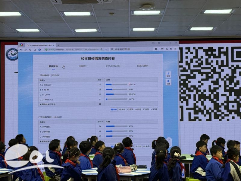 本次研修活动以一份“校本研修参与情况”的现场问卷调查开场,实时呈现真实数据,以问题引领研修进程。活动围绕“立体式参与”理念展开,通过课例研修展示、个案观评及新视点评论的方式,见证教研组成员合作研究的全过程。