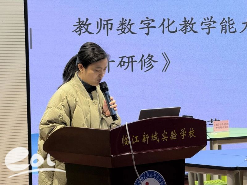 临江新城实验学校语文教研组长陈珊珊老师代表学校语文教研组,对本学期校本研修工作的开展情况与阶段性思考进行了系统汇报。陈老师以“微共体”破解传统教研痛点,构建“四式联动”模式,激发教师内生动力,实现专业成长自主转变。