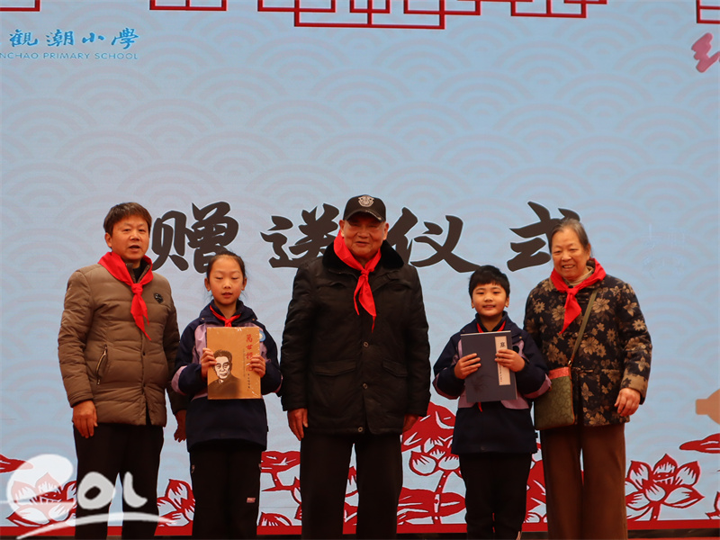 仪式中特别设置了赠书环节。由邹建国老师主编的《高山仰止——成语颂周恩来总理书法作品集》与《万世楷范——纪念周恩来总理剪纸作品集》,作为融合书法、剪纸与红色故事的艺术珍品,由嘉宾代表赠予学生。这既是艺术的传承,更是精神的接力。