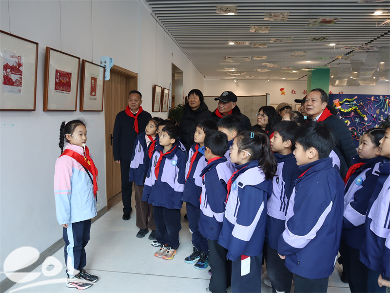 二年级同学们深情朗诵诗歌《周总理 你在哪里》,用稚嫩而真挚的声音传递跨越时空的思念,感动全场。随后,在全体师生的见证下,与会嘉宾共同为展览剪彩。金剪落下,彩绸飘扬,标志着这场融合红色记忆与传统艺术的展览正式向师生与嘉宾开放。