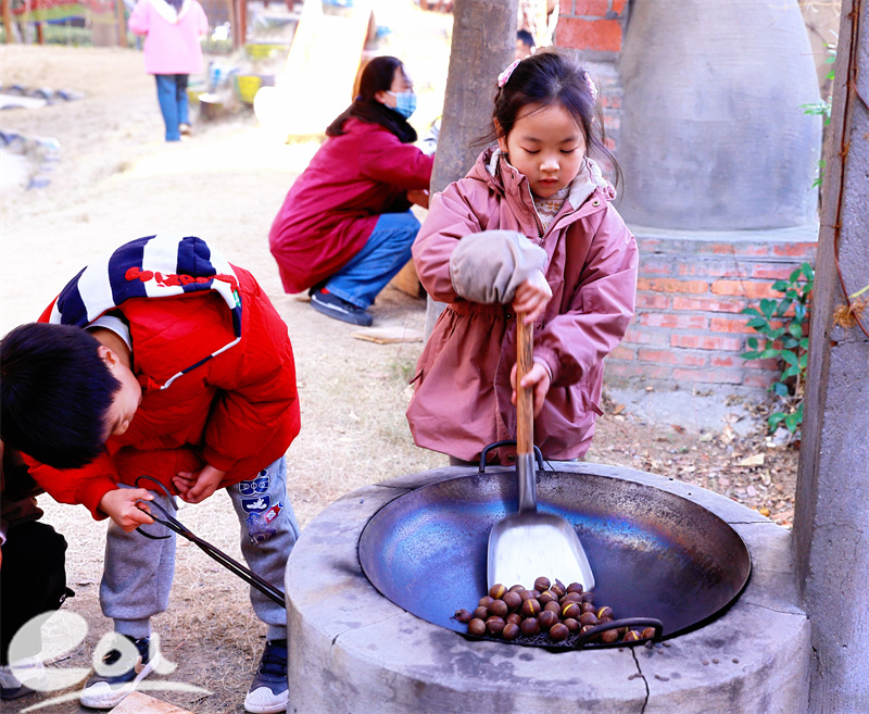 移步户外,生活教育在场景中自然发生:野炊区里,“围炉煮茶”“烤番薯”“炒板栗”升起融融暖意;木工区内,小工匠们正为“冬天动物的家”细致打磨。每一个专注的神情、每一次默契的配合,都被观摩教师悄然记录,成为解读儿童、反思教学的真实镜鉴。
