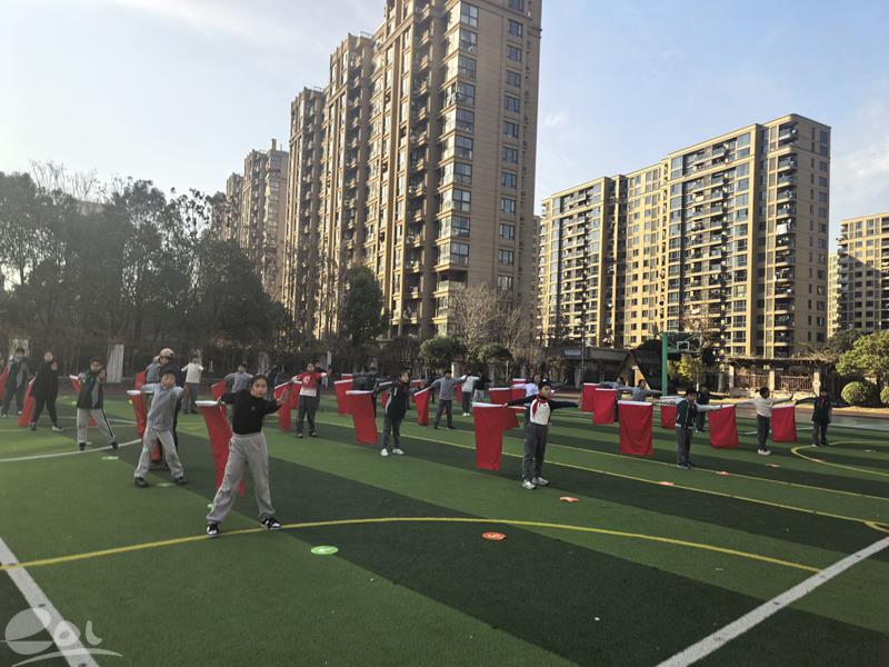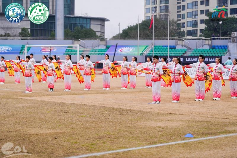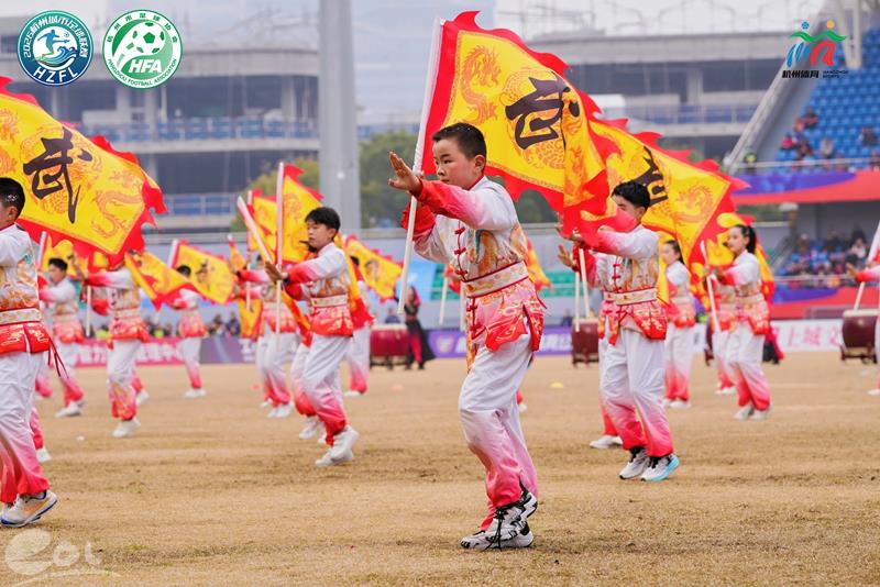 笕桥花园小学武术旗舞队亮相2026杭州城市足球联赛开幕式