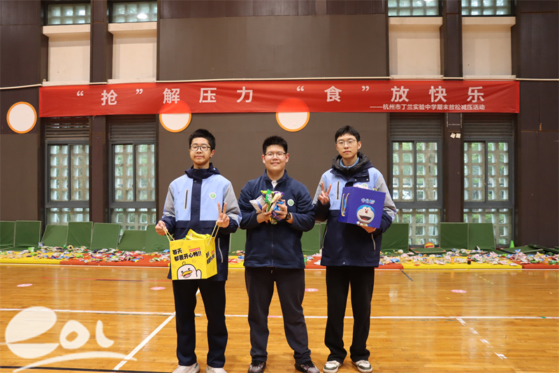 1月19日,为深化“体育+德育”融合育人实践,深入推进“双减”政策实施,帮助同学们在期末考试前释放压力、调节情绪,杭州市丁兰实验中学举办“抢零食大战3.0”期末放松减压活动。