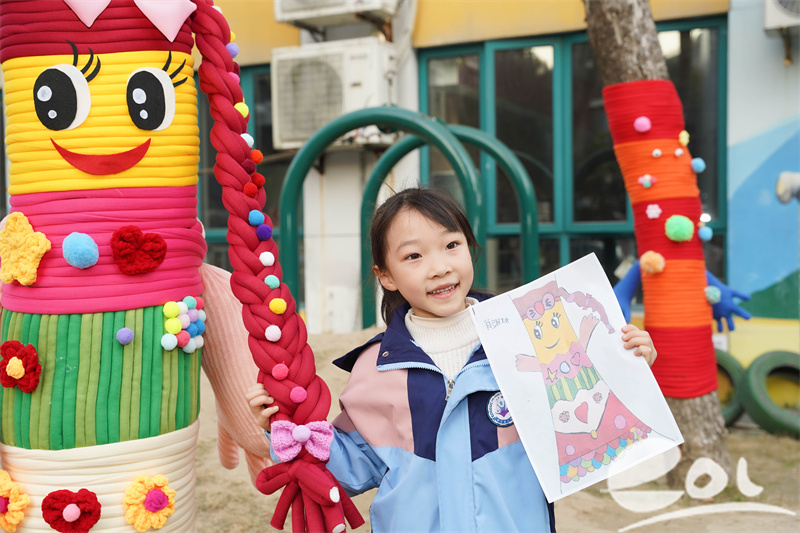 活动的顺利推进离不开比临坊叔叔阿姨们的鼎力支持。接到幼儿设计稿后,他们精心筛选毛线、布料、装饰配件等材料,以精湛的编织技艺为创意赋能,将平面设计转化为可触摸的立体装饰。