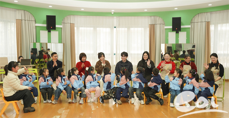 1月16日下午,冬日校园暖意融融,活动迎来最受期待的“拥抱装饰日”。临江佳苑工作人员、幼儿园的孩子们与比临坊的叔叔阿姨们齐聚,共同观看活动回顾视频,画面重现了孩子们迸发创意动手做毛球的温馨瞬间。随后,比临坊坊主程如雪讲述了创作历程。从挑选柔软毛线到对照设计稿编织拼接,每处细节都藏着对孩子们奇思妙想的珍视。王玲玲园长向社区的支持、老师的陪伴、媒体的关注及孩子们的参与表达真挚谢意。《听我说谢谢你》旋律响起,孩子们做起手指谣表达感谢,温情满溢现场。