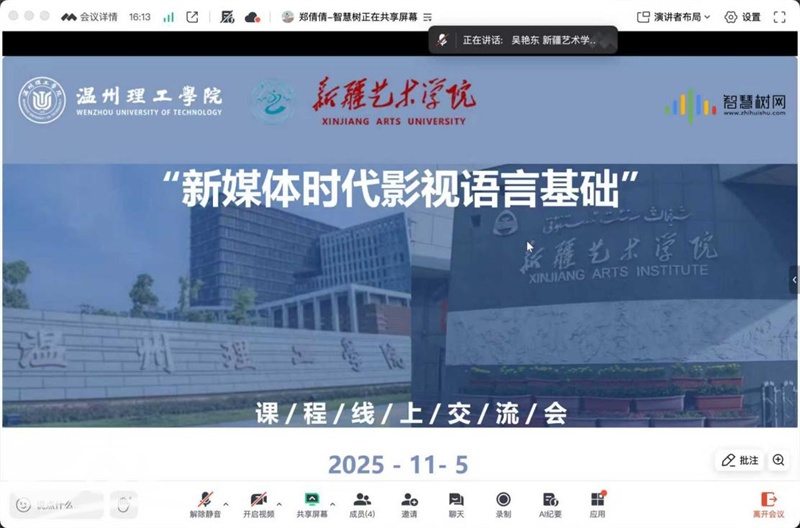 日前,温州理工学院文学与传媒学院与新疆艺术学院文化艺术学院通过智慧树平台,成功开展《新媒体实务》《影视美学》《新媒体时代影视语言基础》三门课程的同步线上公开课。