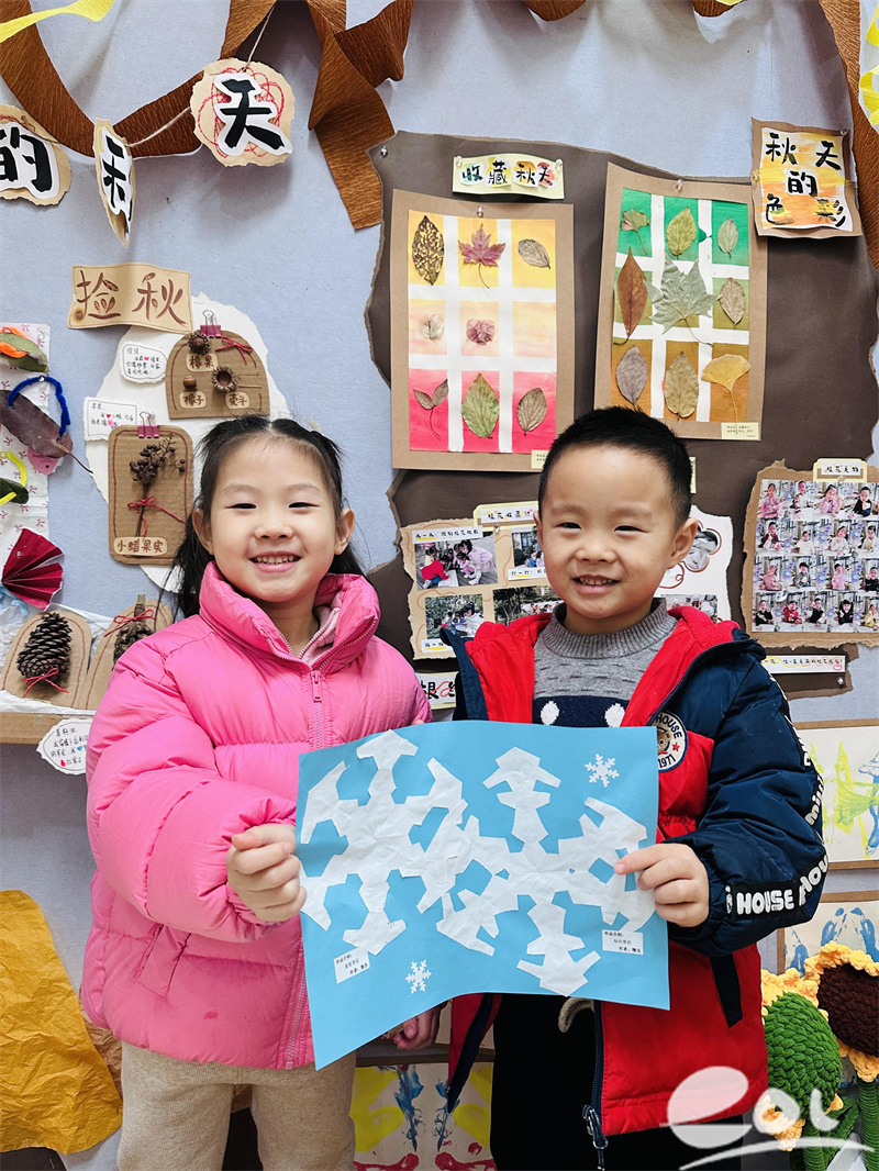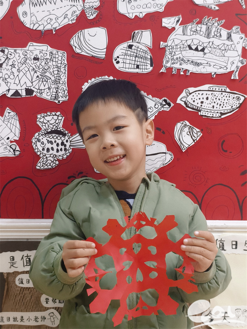 除了与雪花的亲密互动,老师们还结合大寒节气的文化内涵,开展了趣味十足的节气小课堂。孩子们听着“大寒迎年”的民间故事,了解到大寒是年味渐浓的开始,家家户户会忙着腌腊肉、晒腊肠、准备年货。他们跟着老师一起制作简易的“腊味挂饰”,用巧手剪出窗花、雪花等美丽装饰,串成一串串挂在教室里,让浓浓的年味儿在指尖流淌。还有的班级煮起了暖暖的红糖姜茶,孩子们捧着温热的杯子,喝上一口,感受着驱寒暖身的惬意,也明白了大寒时节养生保暖的小知识。