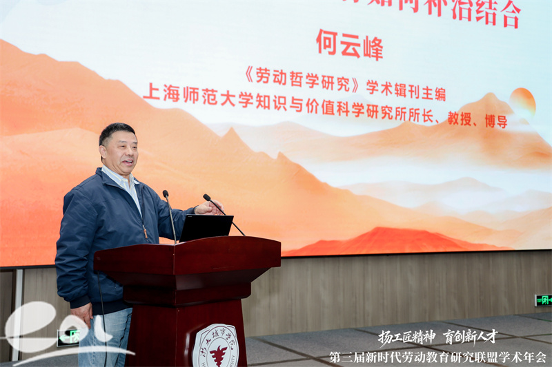 年会邀请杭州市第十三届人大常委会党组副书记、副主任,杭州市劳模工匠协会会长郑荣胜以“学四中全会,扬工匠精神”为题作主旨报告,全国劳动模范、“大国工匠”葛小青,《劳动哲学研究》主编、上海师范大学教授何云峰分别以“坚守匠心之路,‘焊’就精彩人生”“大学生劳动教育补治结合”为题作主题报告。三位不同领域的专家从多个维度系统阐发工匠精神的时代内涵与劳动教育的创新路径。
