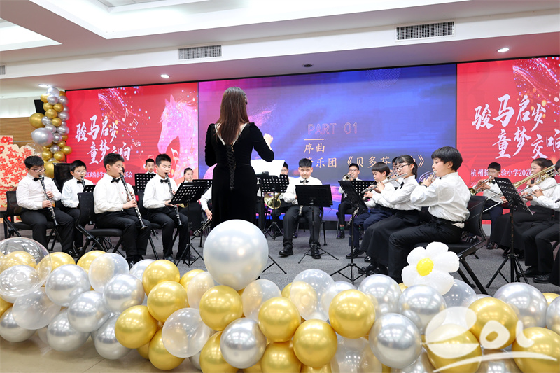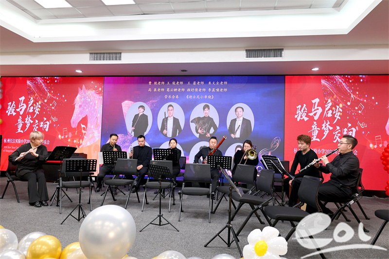 1月19日晚,杭州长江实验小学华灯璀璨,乐韵悠扬。以“骏马启岁·童梦交响”为主题的学校举办首届新年音乐会。作为长江乐团成立后的首场专场演出,本场音乐会不仅展现了学校美育工作的丰硕成果,更彰显了“红色印记·童年味道·书院气息”文化特质在五育融合中的深度实践。学校师生和家长代表共赴盛会。