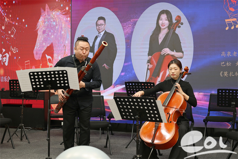 师生合作亮点频出。高泉老师(巴松)与胡海洋老师(大提琴)联袂献上《莫扎特重奏》,典雅悠扬。王俊老师携学生李允铄、蒋德溢、储瑞成带来黑管