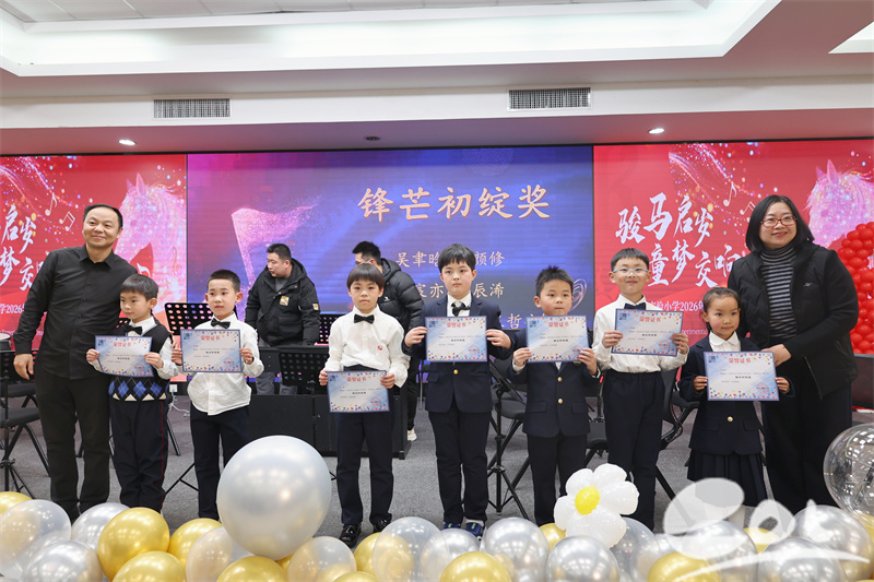 为表彰先进、树立标杆,音乐会特别设立颁奖环节。现场颁发“功勋乐手奖”“声部先锋奖”“新锐飞跃奖”“锋芒初绽奖”。学校领导与专家为获奖学生颁发荣誉证书并合影留念,掌声如潮,致敬每一位用汗水浇灌梦想的小小演奏家。