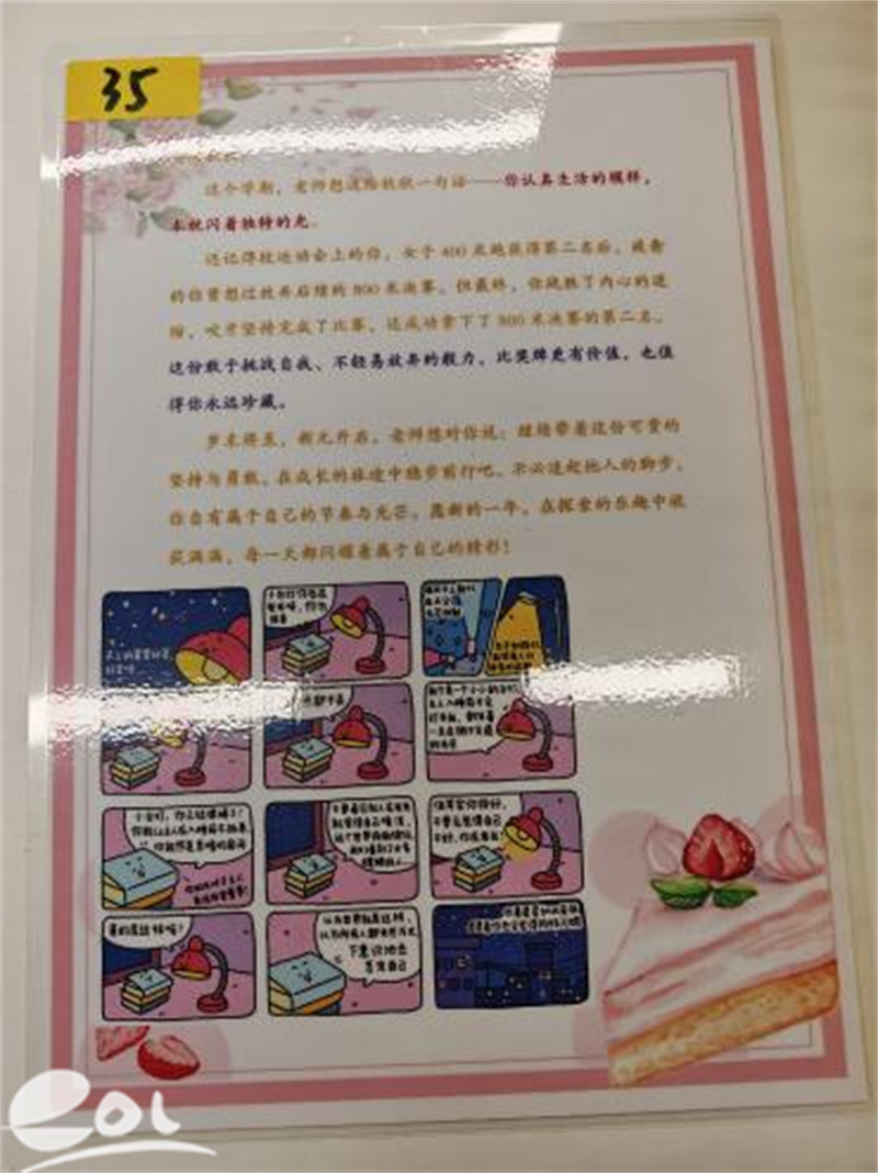 漫画治愈系评语:在写给“秋秋”的评语里,404班老师用“小台灯与书本”的暖心漫画搭配文字,回顾校运会400米、800米赛场的坚持瞬间,告诉孩子“你认真生活的模样,本就闪着独特的光”,图文共情让鼓励更有穿透力。