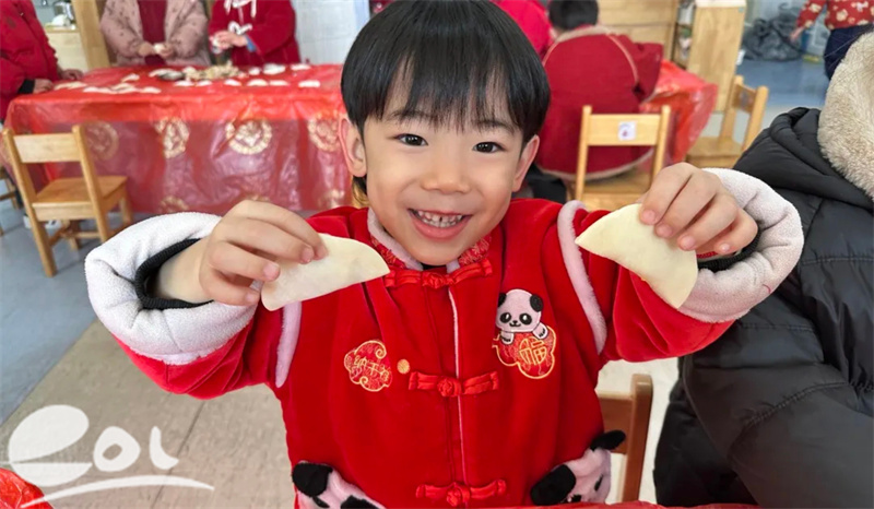 在“巧手备宴”环节,孩子们用小手创造着属于新年的美味。托小班的孩子们专注地搓着糯米小圆子,承载着最简单纯粹的快乐;中班小朋友们认真捏制饺子皮,将饱满的肉馅细心包裹,不规则的褶子间藏着满满的用心与诚意;大班哥哥姐姐们动作麻利,熟练地将鲜香的菜馅裹进薄脆的春卷皮中,展现着成长的风采。