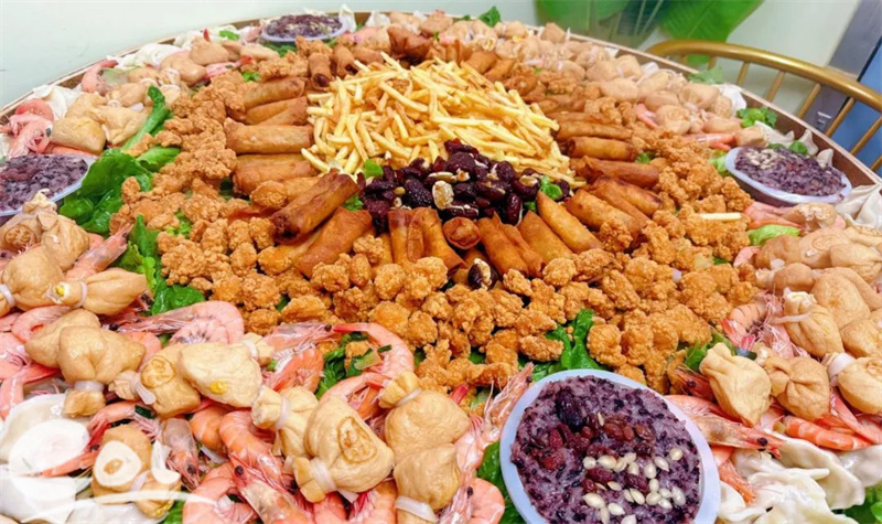 最终,红红火火的红豆小圆子、蒸蒸日上的福袋、金玉满堂的杂粮鸡丁等十道寓意吉祥的菜肴整齐摆上“团圆餐桌”。每道菜都凝聚着孩子们的劳动成果,承载着对新年的美好期许,让孩子们在实践中体会劳动快乐,感受传统美食文化魅力。