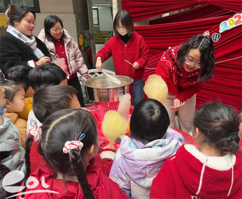 甜蜜时刻接踵而至,棉花糖机“嗡嗡”转动,洁白的糖丝如云朵般缓缓冒出,转眼变成胖乎乎、软乎乎的棉花糖。孩子们踮着小脚接过这份甜蜜,轻轻一舔,甜丝丝的味道在口腔中化开,定格下童年最美好的模样。