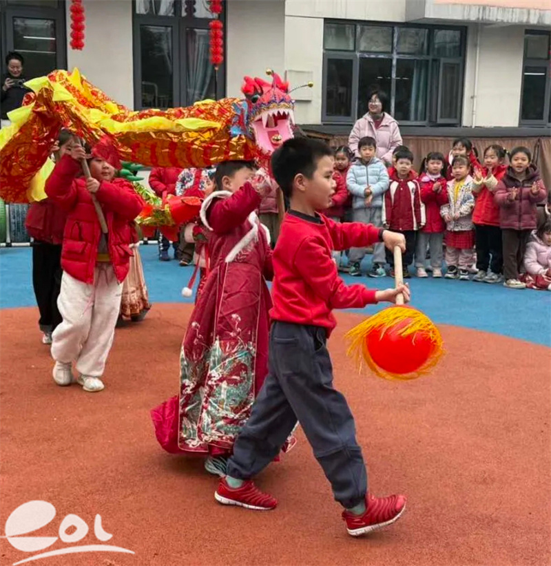 作为春节最具代表性的民俗活动,舞龙环节将现场氛围推向高潮。孩子们身着喜庆服饰,跟着欢快的音乐摇摇摆摆,充分展现出中国娃的活力与朝气。通过亲身体验舞龙习俗,孩子们不仅感受到传统文化的喜庆与热闹,更在心中种下了传承民俗文化的种子。