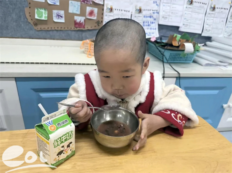 点心时分,孩子们围坐在一起,小口品尝温热香甜的腊八粥,在潜移默化中了解腊八节的传统习俗。活动中,幼儿园格外注重培养孩子们的感恩之心,孩子们亲手捧着封装好的腊八粥,将冬日里的温暖与祝福带回家,与爸爸妈妈共同分享,让传统节日的温情在家庭中传递。