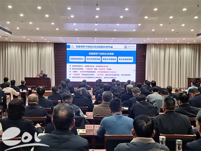 谢树华作《普通高校党委领导下的校长负责制的内涵与实践》专题报告,对党委领导下的校长负责制进行了系统的理论与实践阐释。报告逻辑清晰、系统全面,围绕这一根本制度的历史选择、科学内涵、保障制度与运行机制四大维度展开深入阐述。