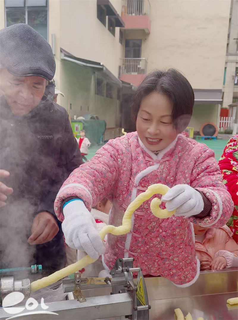 “美食一条街” 则香气扑鼻,让萌娃们大饱口福!冻米糖的香甜、糖葫芦的酸甜、打麻糍的软糯、山楂球的爽口,还有定胜糕、苹果小圆子、长鼻王、小麻花、虾片等各色美食,摆满了一个个摊位。这些美食都是各班保育员和家长志愿者们精心准备的,宝贝们排着小队伍,拿着小盘子,挑选着自己爱吃的零食,吃得津津有味,脸上沾满了甜甜的酱汁,变成了可爱的“小花猫”!