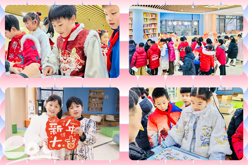 一年级的“年味集市”热闹开启,萌娃们化身“赶年集的小骏马”,手持闯关卡,在各个趣味关卡中蹦蹦跳跳闯通关。语文乐园里,“拼读糖葫芦”让孩子们随机抽取拼音、词语卡片,大声拼读认读,在甜蜜体验中巩固拼音识字能力;“诵读扫年货”环节,孩子们朗声背诵课内必背古诗与优美文段,抑扬顿挫的童声里满是对经典的热爱;“说话迎福气”中,孩子们围绕灯笼、团圆饭等新年主题图片展开想象,用完整流畅的话语讲述生动小故事,争当“故事小达人”。