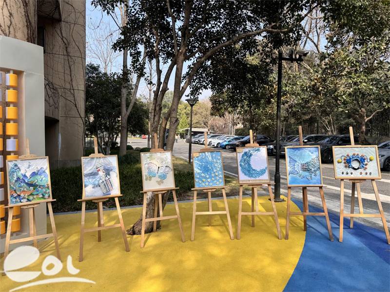 坐落于上城区九堡街道蚕桑社区的娃哈哈九辰幼儿园,始终秉持“耕心育人、织锦未来”的教育理念,将蚕桑文化这一地域特色瑰宝融入日常课程,让孩子们在养蚕、采桑、创作出中感受传统文化的魅力与生命的奥秘。此次受邀参展,幼儿园精心遴选了一系列幼儿蚕桑主题作品,在开馆仪式现场打造了专属展区,成为开馆仪式上一道独特的风景线。