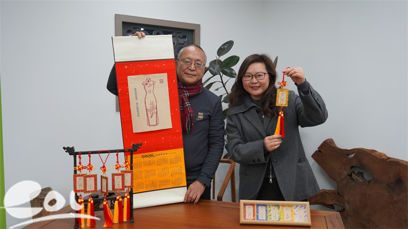 除了五件金石旗袍原作,来自上城区社区学院的文化特派员张西琴还将其延伸为多元文创产品:挂历、挂饰、摆台文创三件套上线,把采荷的文化韵味带回家!2026年挂历将旗袍雅韵融入日常时光,旗袍雅韵挂饰让文化随身相伴,金石旗袍秀摆台成为家居装饰新选,让“五和”文化渗透生活场景。这些成果不仅是文化特派员“以文赋能、以美润心”的实践成果,更彰显了采荷街道多元协同的文化建设模式——依托产业社区平台,链接文化资源、民间达人与居民需求,让文化从单向传播变为双向互动,从艺术殿堂走进生活市井。